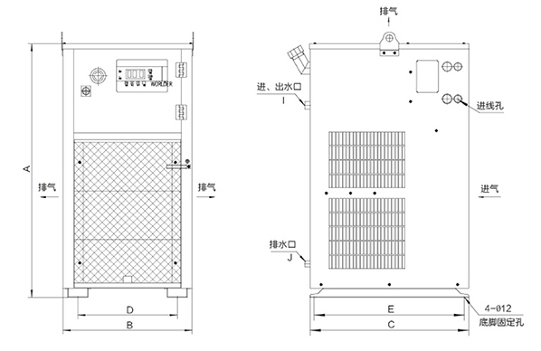 3.冷水機(jī)安裝時(shí),進(jìn)風(fēng)口需預(yù)留≮ 50cm的空間,出風(fēng)口預(yù)留≮150cm的空間;