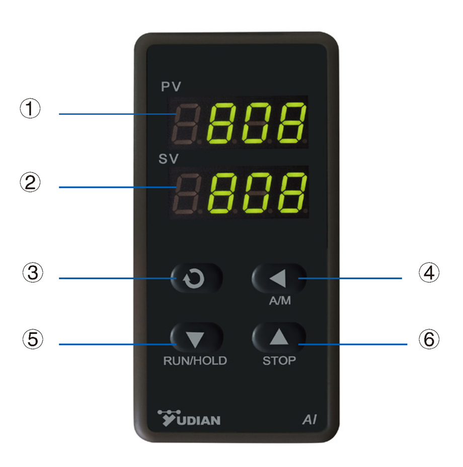 ① 上顯示窗,顯示測(cè)量值PV、參數(shù)名稱等